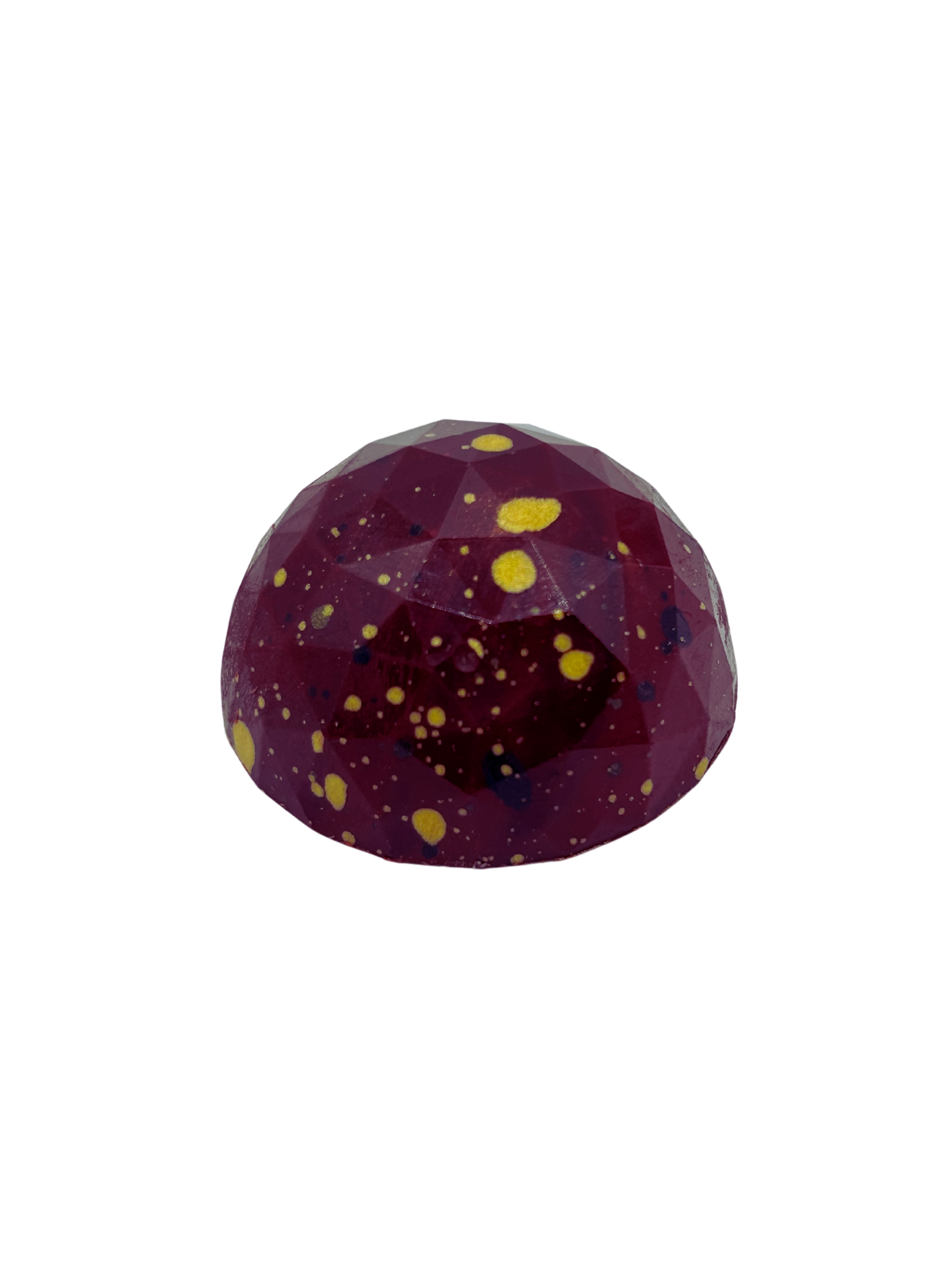 Filled with a layer of black cherry pate de fruit and cheesecake flavored white chocolate.